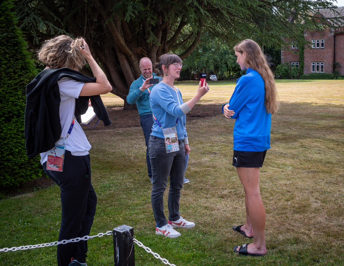 Belgíska fréttakonan Hermien Vanbeveren er mætt hingað til Englands til að fjalla um landslið Belgíu á Evrópumótinu. Hún var í dag komin til Crewe til þess að fræðast meira um íslenska landsliðið.