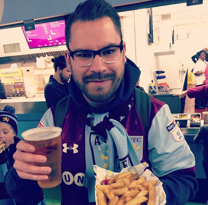 Ég byrjaði að halda með Aston Villa af því... Átrúnaðargoðið mitt Peter Schmeichel gekk til liðs við liðið um svipað leyti og ég eignaðist minn fyrsta Championship Manager leik. Ég eyddi alltof miklum tíma í að spila þann leik og átti frábært save í CM 01/02 sem gerði það að verkum að ég varð ástfanginn af félaginu. Kann að hljóma furðulega en hef einhvern veginn allar götur síðan verið stuðningsmaður liðsins.