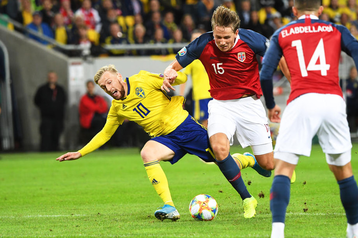 Tveir leikir fóru fram í F-riðli en þar gerðu Svíþjóð og Noregur 1-1 jafntefli í Skandinavíuslag. Andreas Granqvist, fyrirliði sænska liðsins, átti þá hræðilega sendingu úr vörninni og komst Joshua King inn í hana. Hann kom boltanum inn í teig á Martin Ödegaard. Norska undrabarnið færði boltann áfram á Stefan Johansen sem skoraði örugglega.