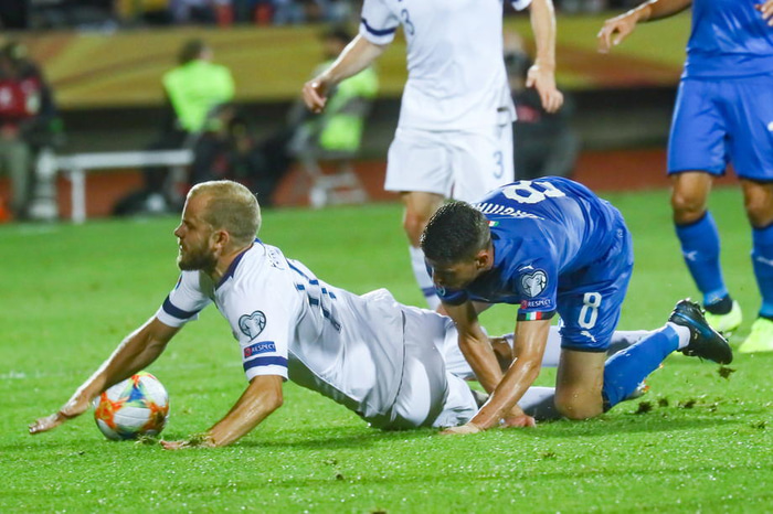 Ítalía vann þá Finnland í sama riðli, 2-1. Ciro Immobile skoraði á 59. mínútu eftir sendingu Federico Chiesea en á 71. mínútu fengu Finnar vítaspyrnu er Stefano Sensi braut á Teemu Pukki innan teigs. Pukki fór á punktinn og skoraði. Pukki búinn að eiga frábærar síðustu vikur bæði með Finnlandi og Norwich. Ítalía fékk hins vegar víti nokkrum mínútum síðar og tryggði þar Jorginho sigurinn af punktinum. Lokatölur 2-1 og Ítalía vinnur toppslaginn en liðið er með 18 stig á meðan Finnland er með 12 stig.