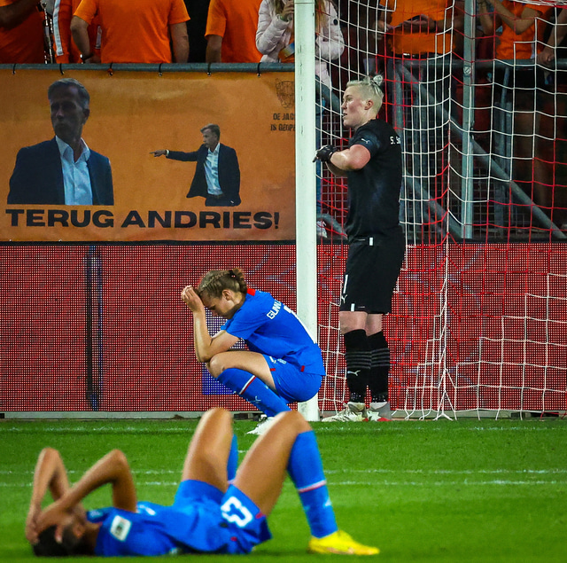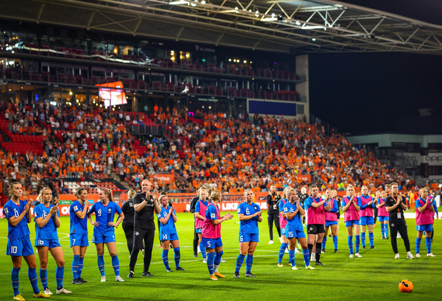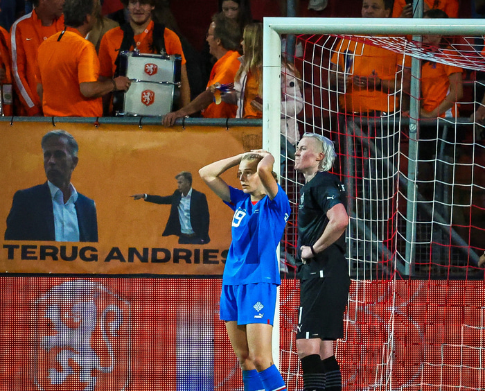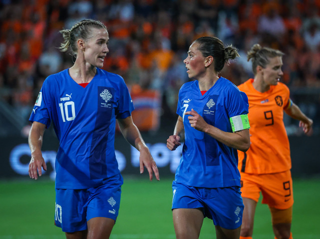 Ísland tapaði 0 - 1 gegn Hollandi í undankeppni HM 2023 í Utrecht í Hollandi i fyrrakvöld. Hér að neðan má sjá myndir úr leiknum.