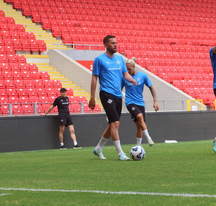 Gylfi er 35 ára í dag, á afmæli. Jóhann Berg Guðmundsson, landsliðsfyrirliði, var spurður að því hvort því yrði fagnað í miðju landsliðsverkefni.