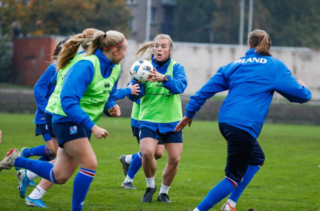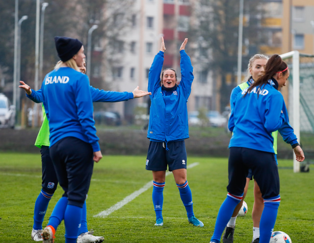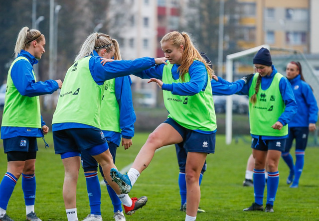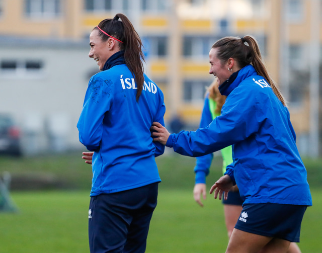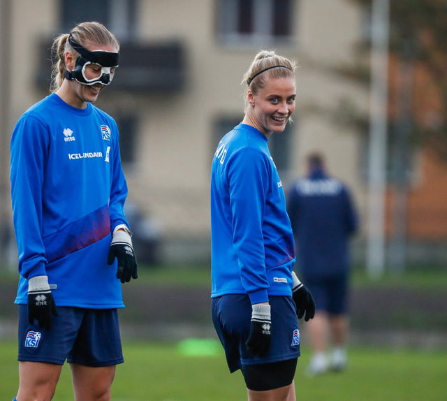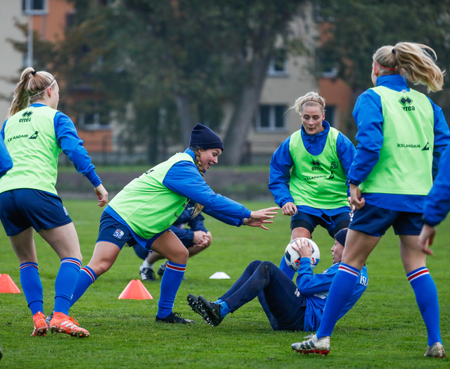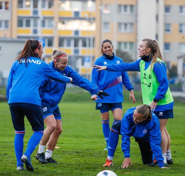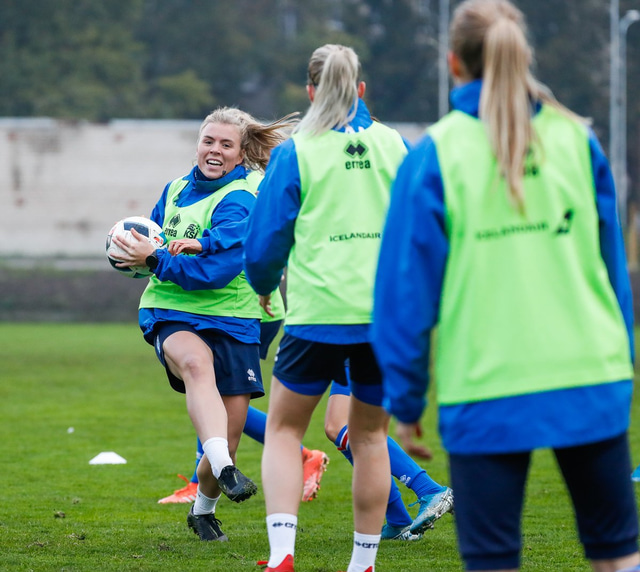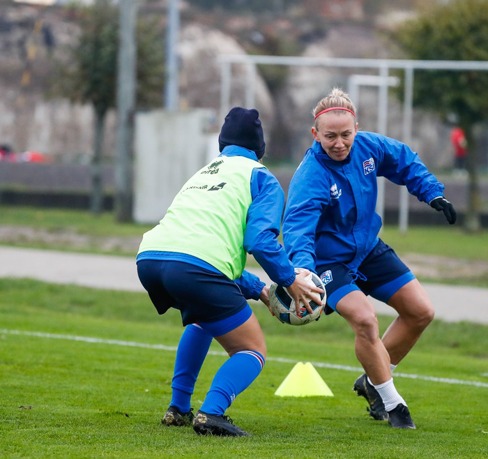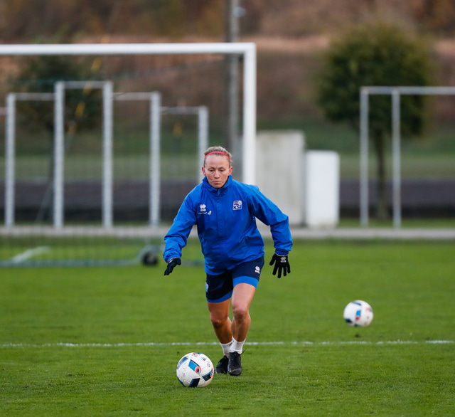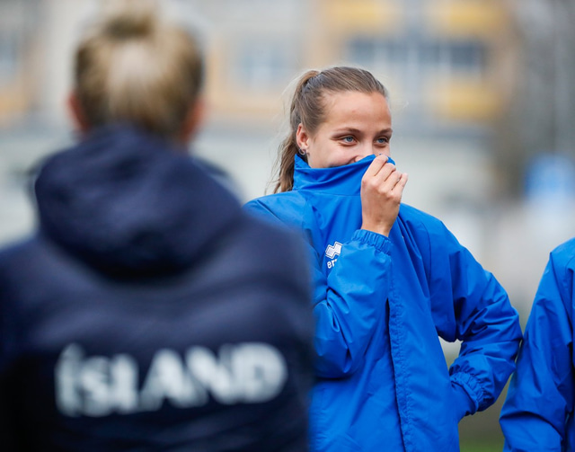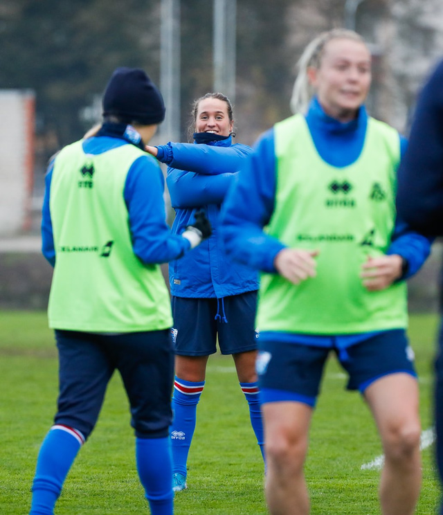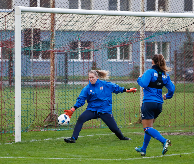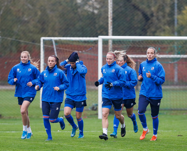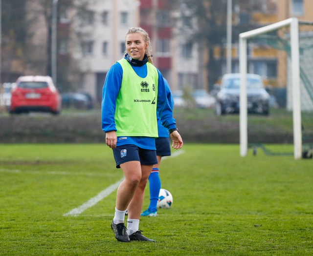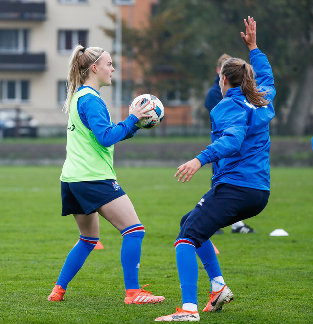Kvennalandslið Íslands mætir Lettlandi í undankeppni EM 2021 í dag en leikið er ytra. Ekki var hægt að æfa á keppnisvellinum, Daugava leikvangnum í Liepaja í gær og æfingin því færð á Ólympíuleikvanginn sem er þar skammt frá. Hér að neðan er fjöldi mynda frá æfingunni.
