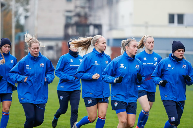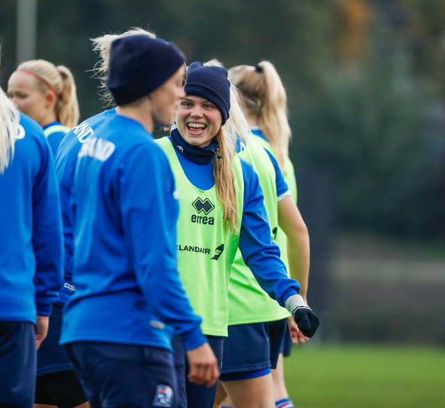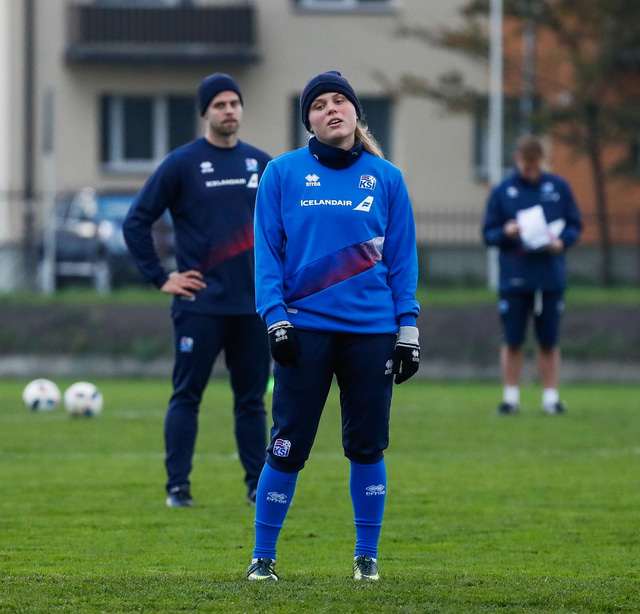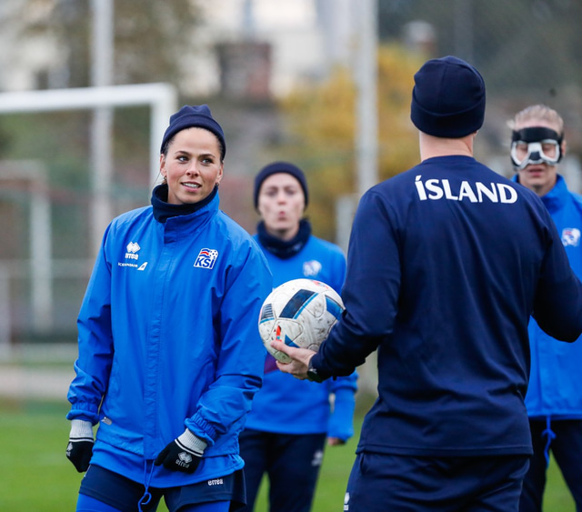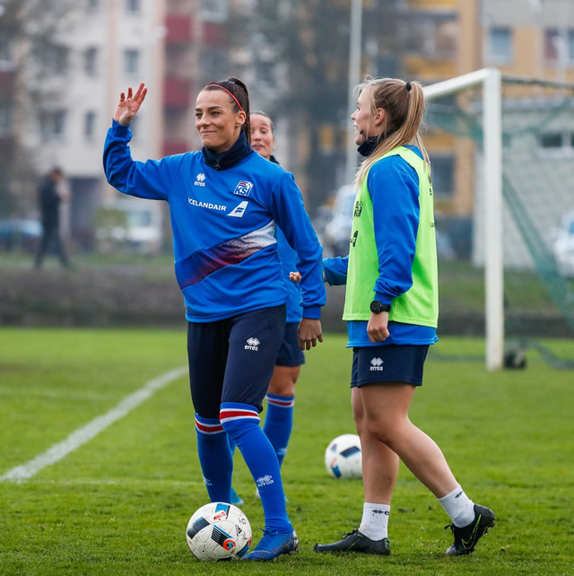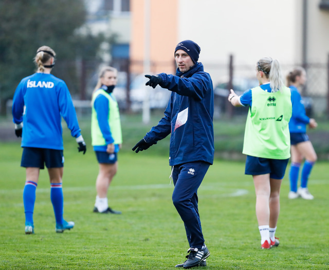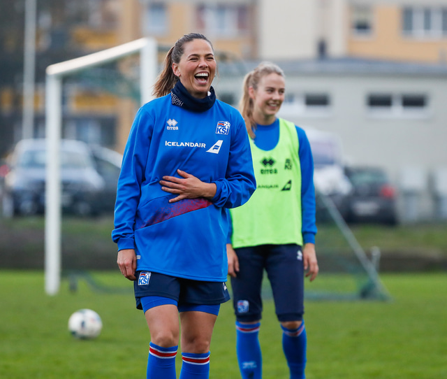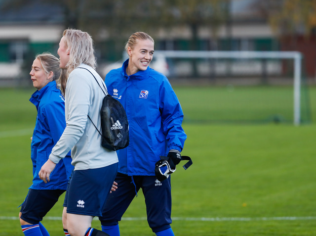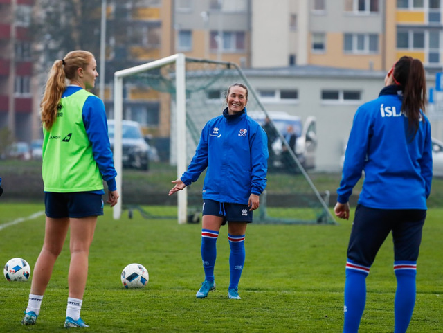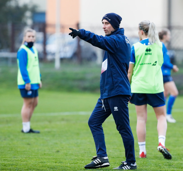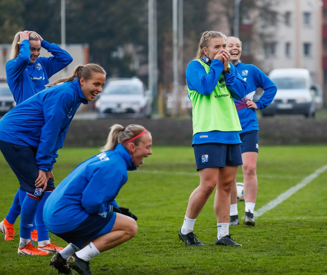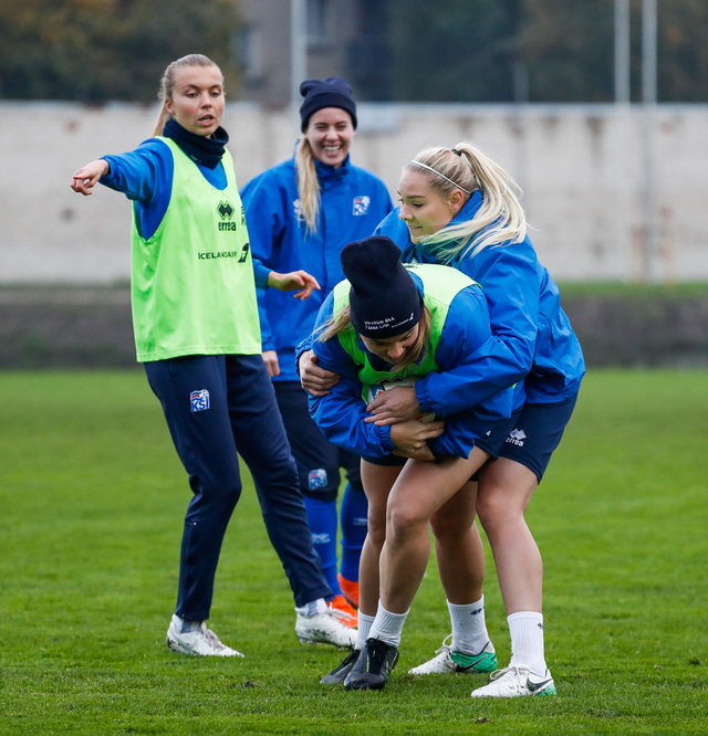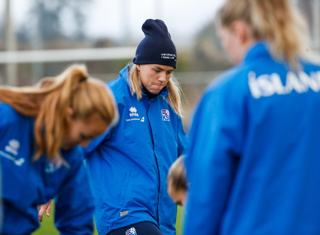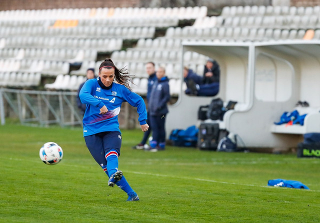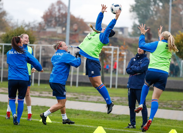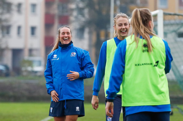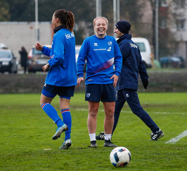 Kvennalandslið Íslands mætir Lettlandi í undankeppni EM 2021 í dag en leikið er ytra. Ekki var hægt að æfa á keppnisvellinum, Daugava leikvangnum í Liepaja í gær og æfingin því færð á Ólympíuleikvanginn sem er þar skammt frá. Hér að neðan er fjöldi mynda frá æfingunni.
