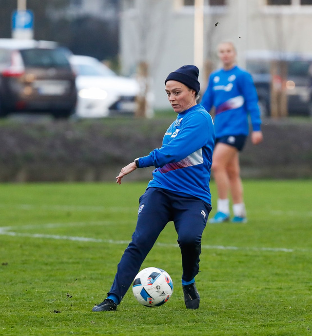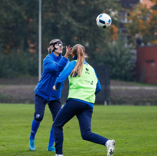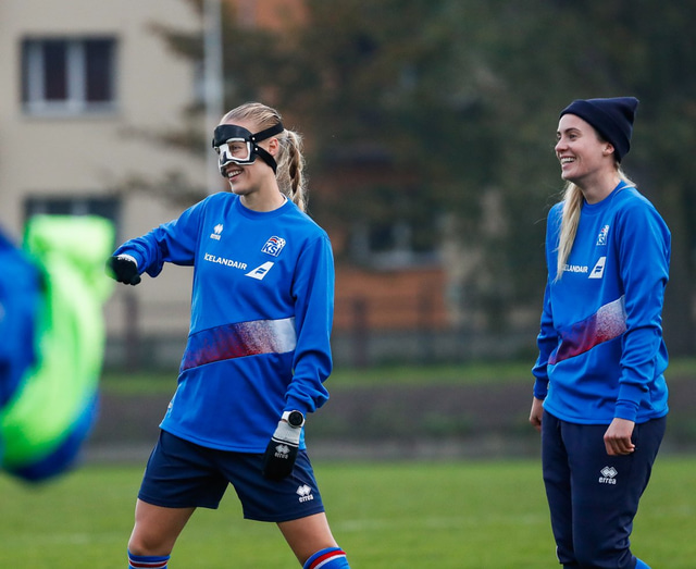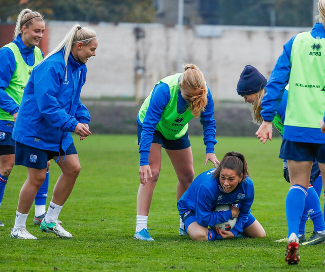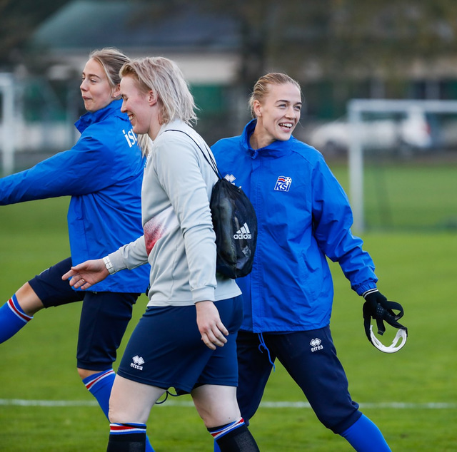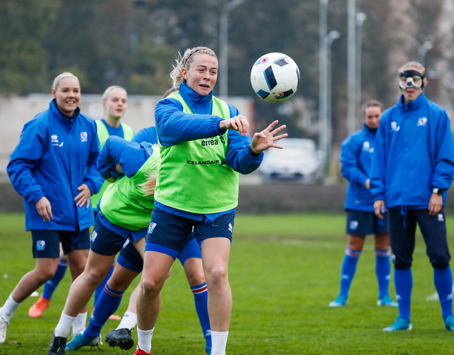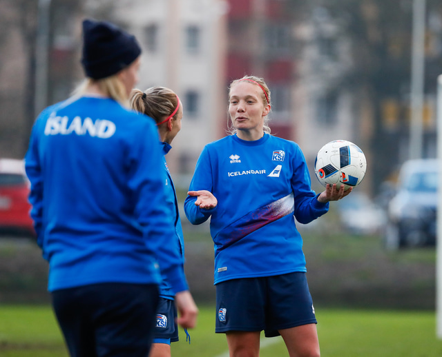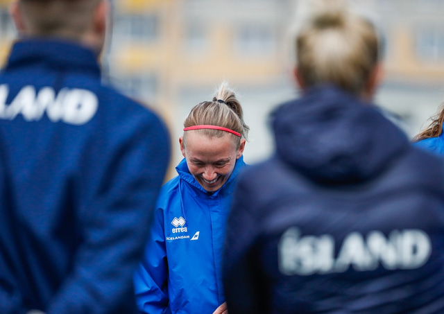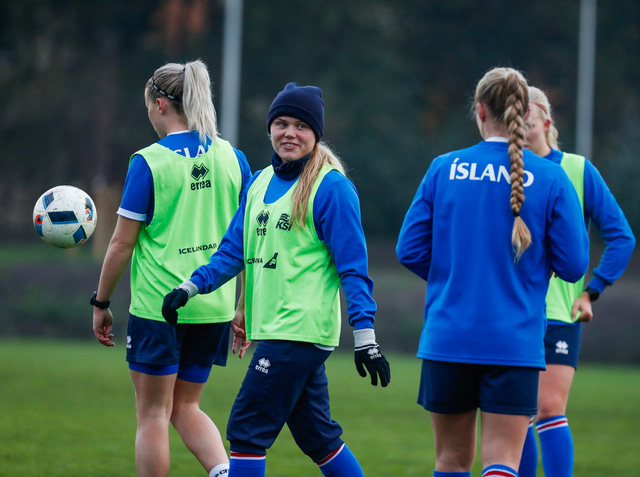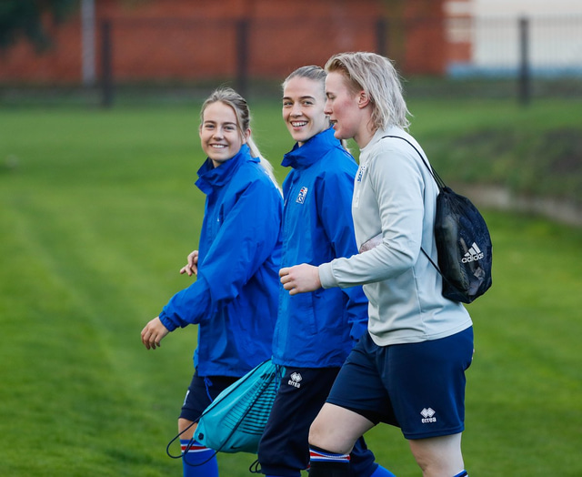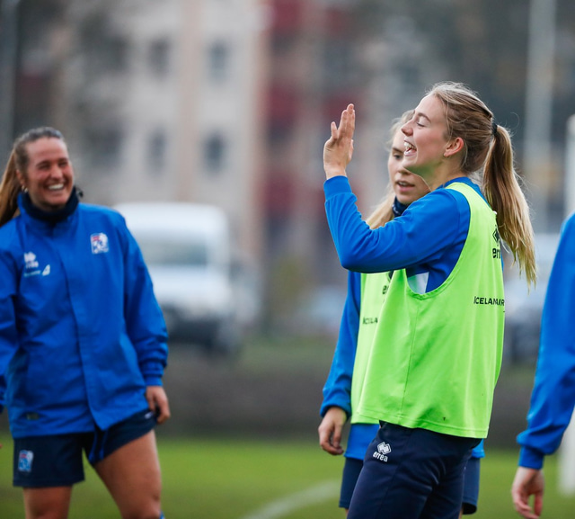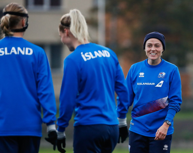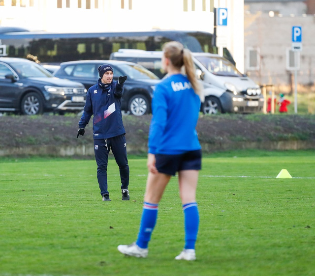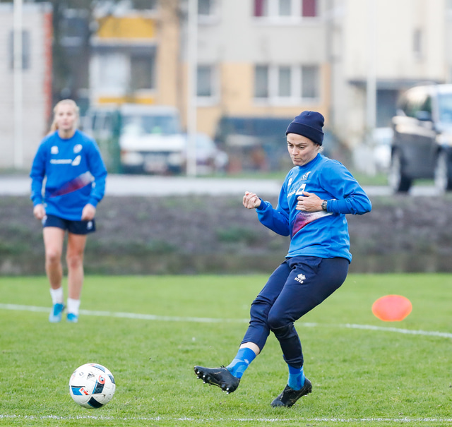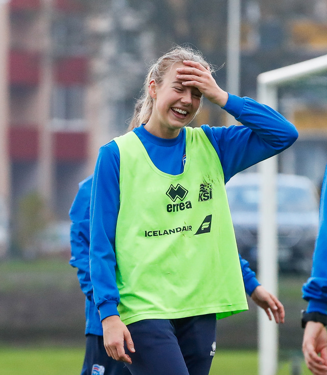 Kvennalandslið Íslands mætir Lettlandi í undankeppni EM 2021 í dag en leikið er ytra. Ekki var hægt að æfa á keppnisvellinum, Daugava leikvangnum í Liepaja í gær og æfingin því færð á Ólympíuleikvanginn sem er þar skammt frá. Hér að neðan er fjöldi mynda frá æfingunni.