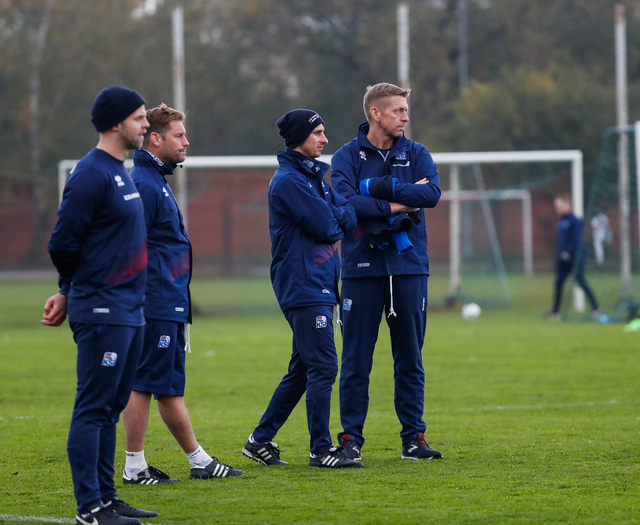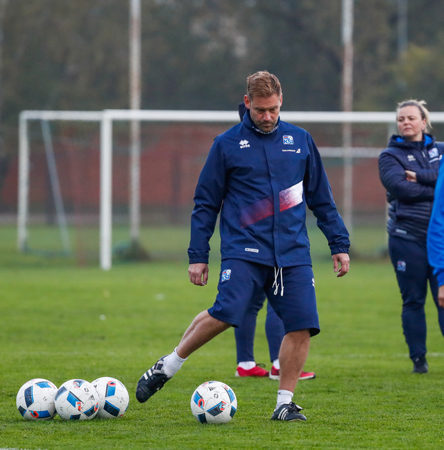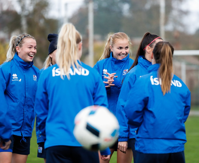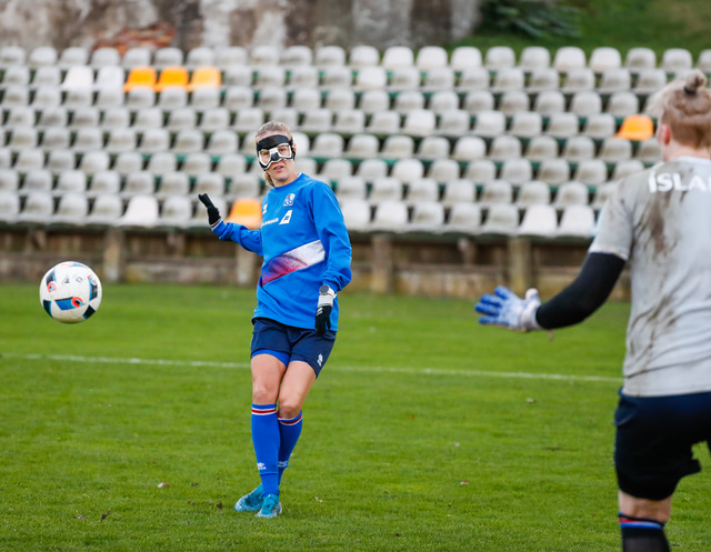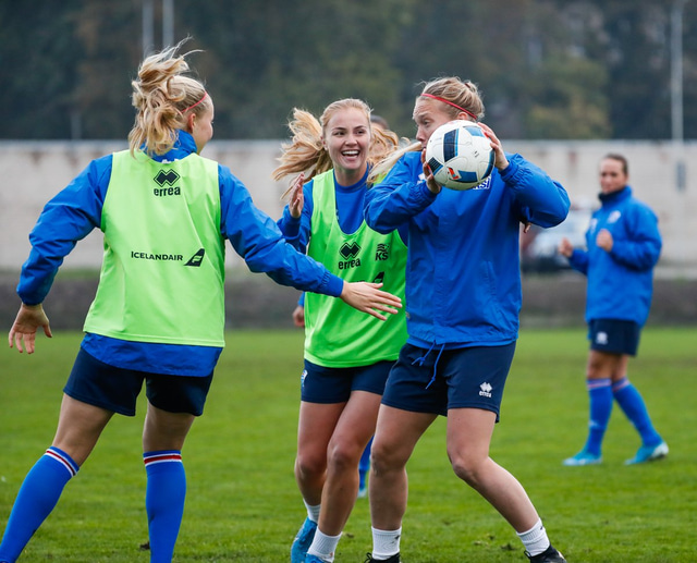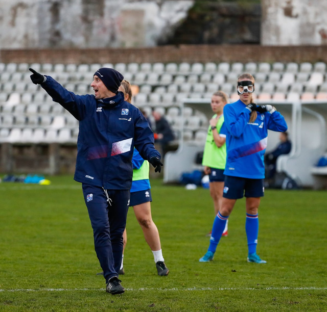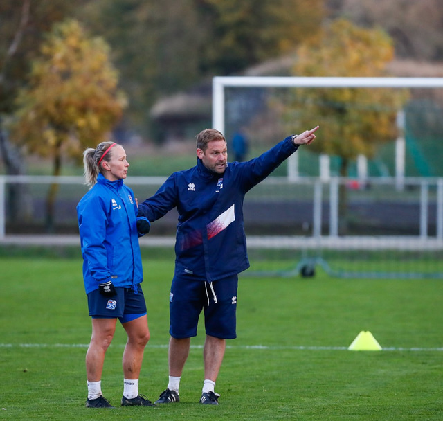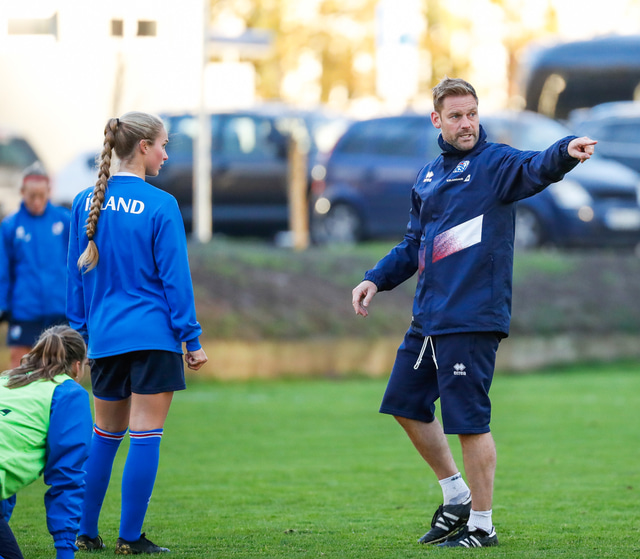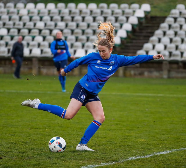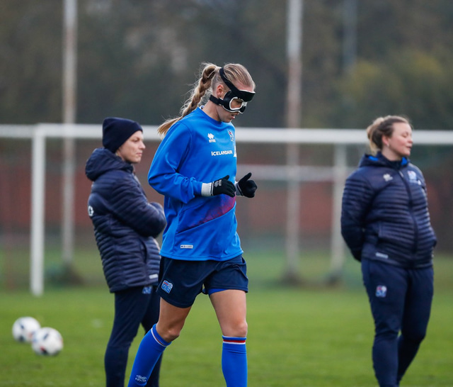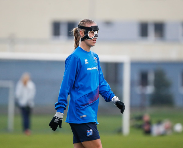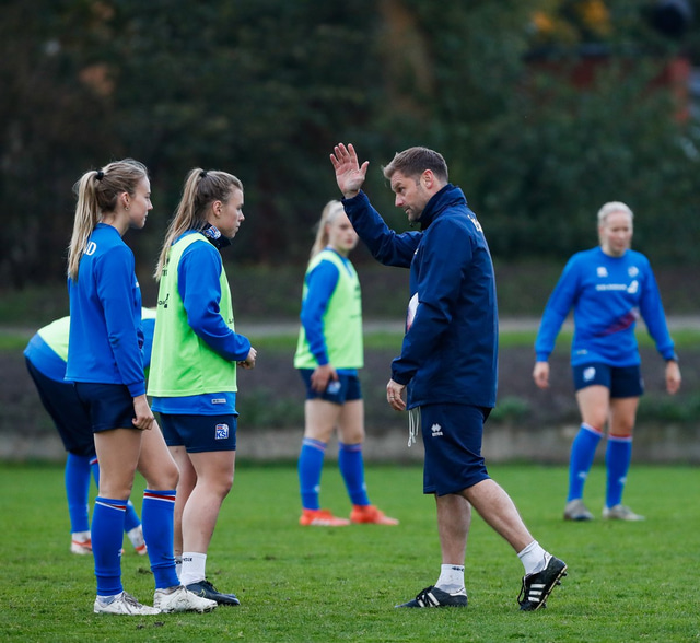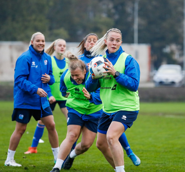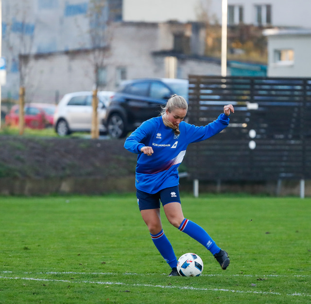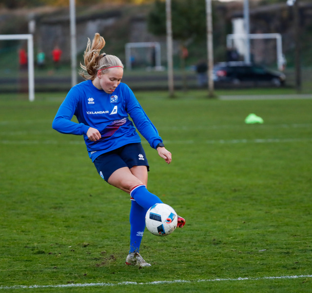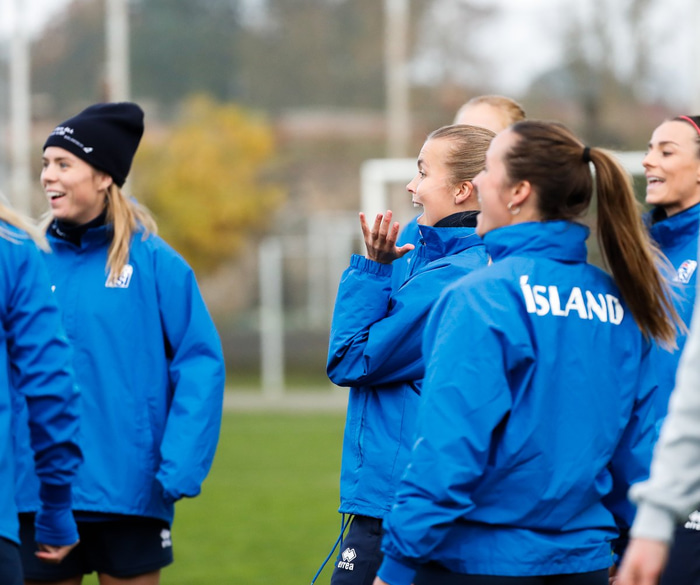 Kvennalandslið Íslands mætir Lettlandi í undankeppni EM 2021 í dag en leikið er ytra. Ekki var hægt að æfa á keppnisvellinum, Daugava leikvangnum í Liepaja í gær og æfingin því færð á Ólympíuleikvanginn sem er þar skammt frá. Hér að neðan er fjöldi mynda frá æfingunni.