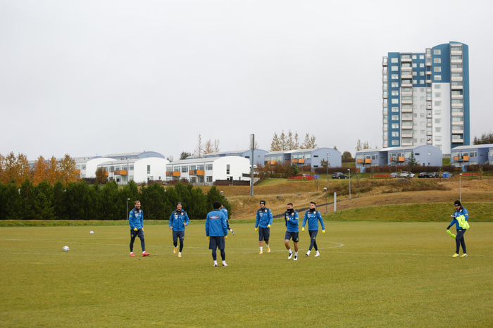 Samkvæmt heimasíðu rúmenska sambandsins var um hálftíma æfingu að ræða þar sem menn fengu aðeins að liðka sig og fara yfir taktíkina fyrir leikinn í kvöld.