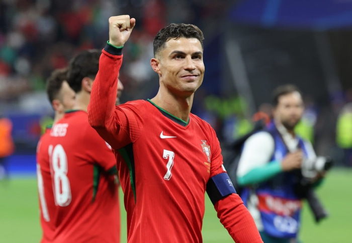 „En í alvöru talað þá er ég stoltur að taka við þessum verðlaunum. Ég sé þau ekki sem sem endir á ferlinum heldur meira sem áframhald af öllu sem ég hef gert á ferlinum. Ég hef verið með landsliðinu í 22 ár og ég held að það tali sínu máli – sem er ástríðan fyrir því að klæðast treyjunni, spila fyrir landsliðið og vinna titla. Ég segi oft að ef ég gæti bara spilað fyrir landsliðið þá myndi ég ekki spila fyrir annað félag því það er hápunktur ferilsins hjá öllum fótboltamönnum,“ sagði Ronaldo.