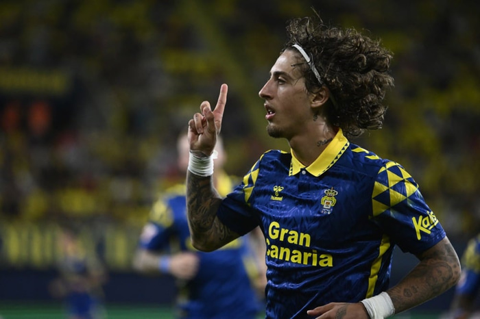 Fabio Silva kom Las Palmas yfir snemma leiks þegar hann skallaði boltann í netið eftir hornspyrnu.