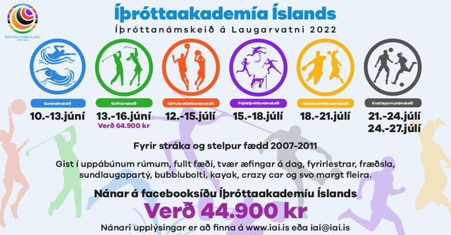 Takmörkuð sæti eru í boði og eru allar nánari upplýsingar á heimasíðu Íþróttaakademíu Íslands www.iai.is, á facebooksíðu Íþróttaakademíunnar eða í gegnum [email protected].