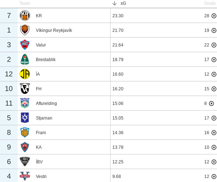 xG tölfræðin í Bestu deildinni 13. júní í sumar. Það kom skýrt fram í viðtalinu að Óli er ekki aðdáandi xG tölfræðinnar.