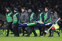 Honum var gefið súrefni á meðan hann var borinn af velli. Það var síðan gefið út að hann væri með meðvitund og væri að spjalla við fólk í kringum sig. Hann fór í frekari skoðun á sjúkrahúsi.