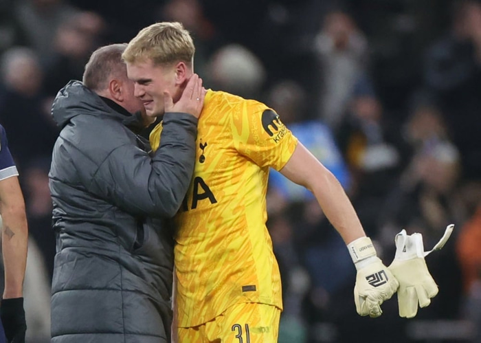 Hinn 21 árs gamli Antonin Kinsky átti frábæran leik í marki Tottenham gegn Liverpool í enska deildabikarnum í gær.