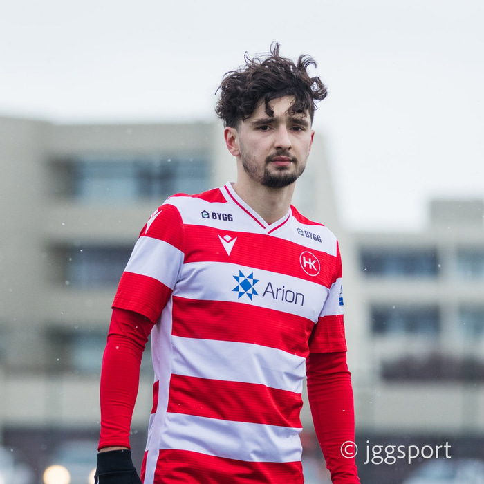 HK lék manni færri síðustu sekúndurnar þegar Örvar Eggertsson fékk sitt annað gula spjald.