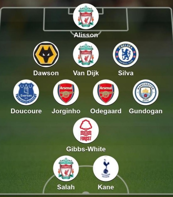 Miðjumaður - Martin Ödegaard (Arsenal): Fagleg frammistaða Arsenal í 2-0 sigri gegn Newcastle. Norski fyrirliðinn skoraði fyrra markið og hefur verið einn besti leikmaður deildarinnar.