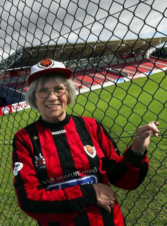 „'Amma Víkingur' mætti á völlinn og studdi félagið sama hvernig gengi liðsins var enda skiptir öllu máli að styðja sitt félag sama hvort með eða á móti blási," segir í tilkynningu Víkings.