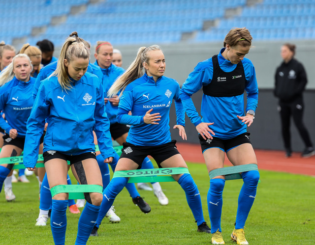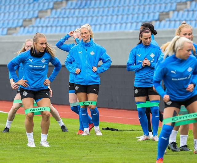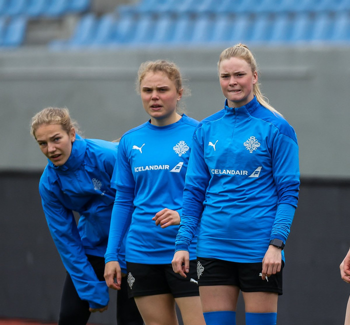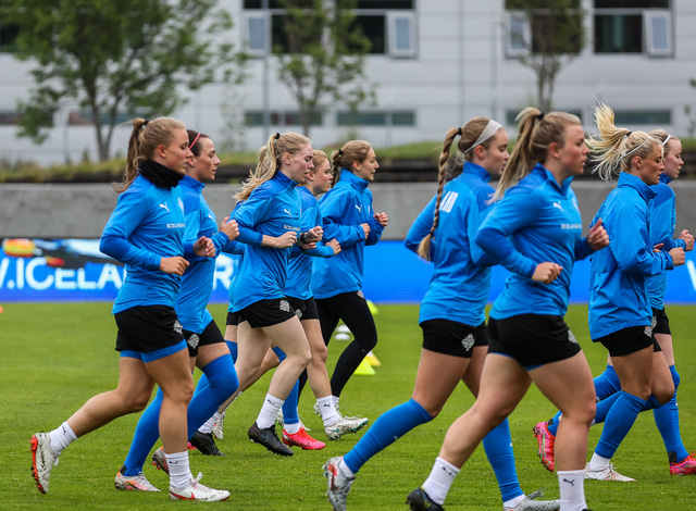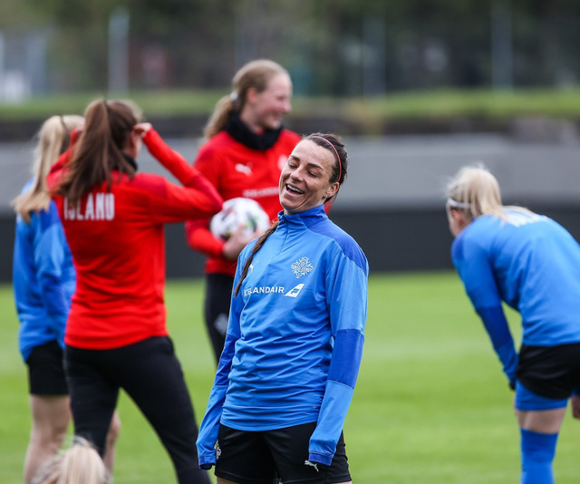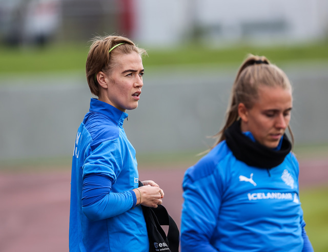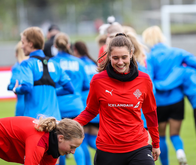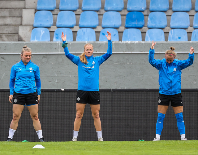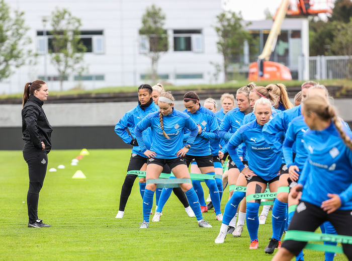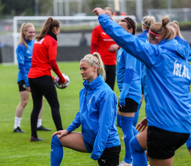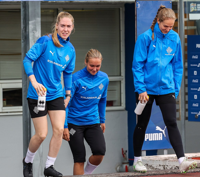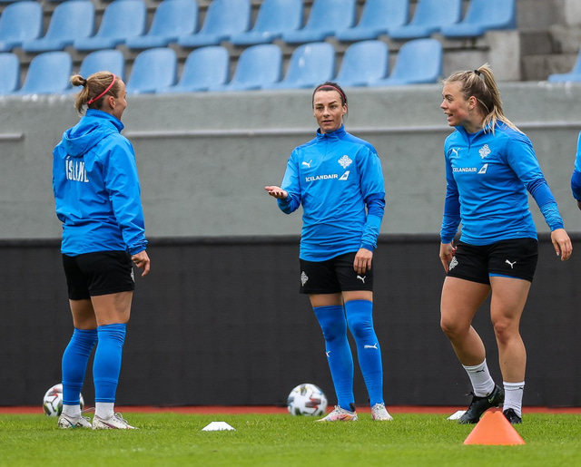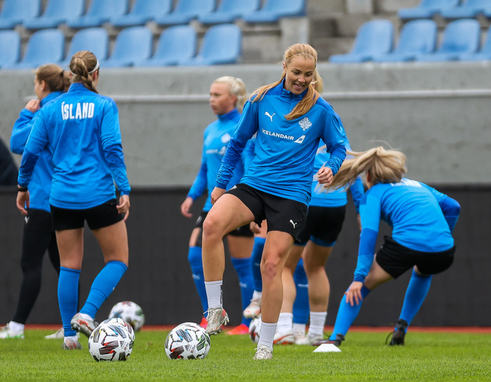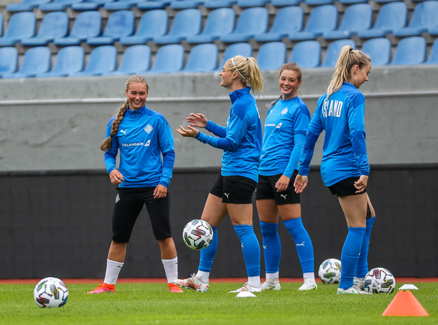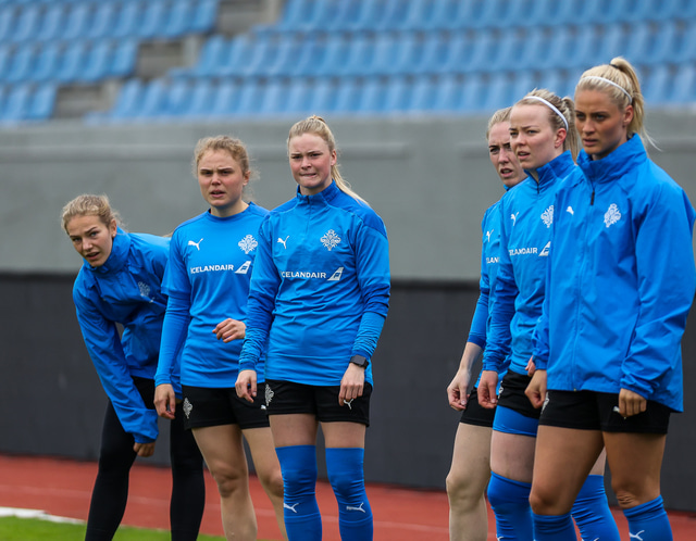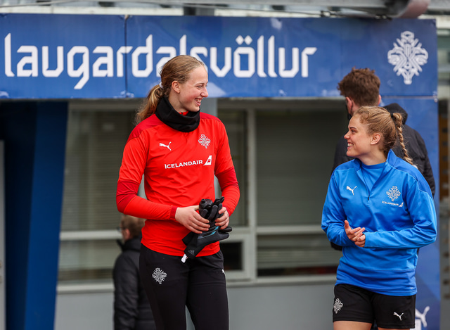 Ísland mætir Írlandi í vináttulandsleikjum á Laugardalsvelli á föstudag og þriðjudag. Liðið æfði í gær morgun og þar tókum við þessar myndir.