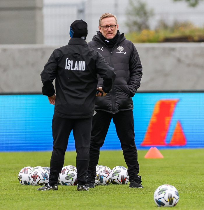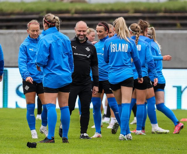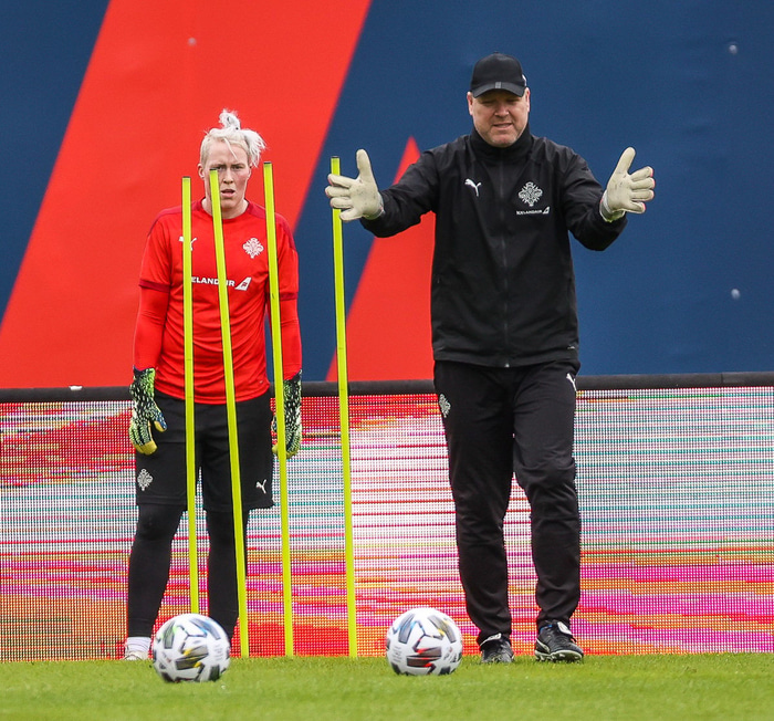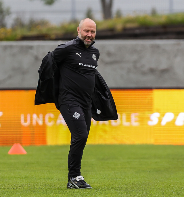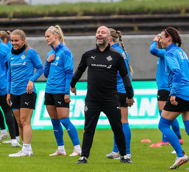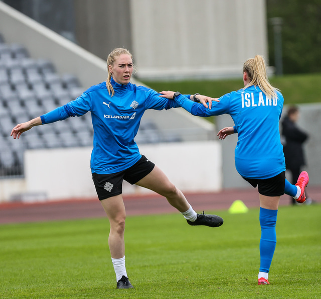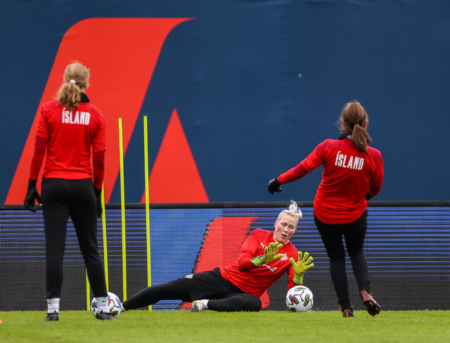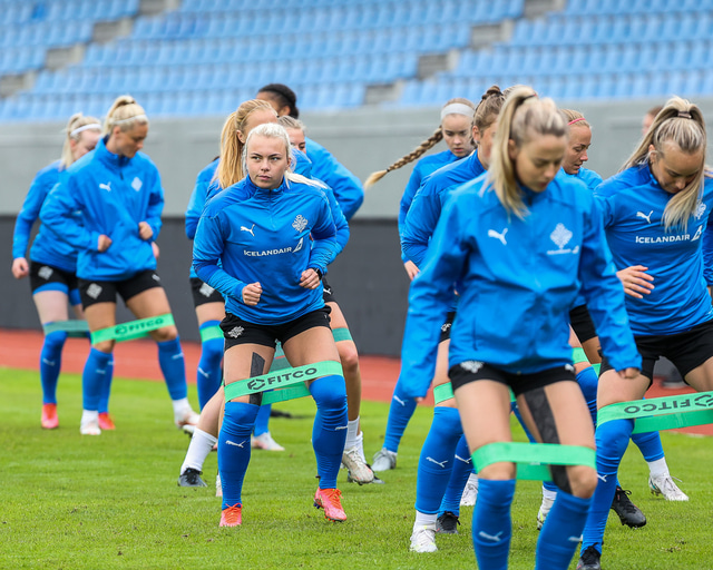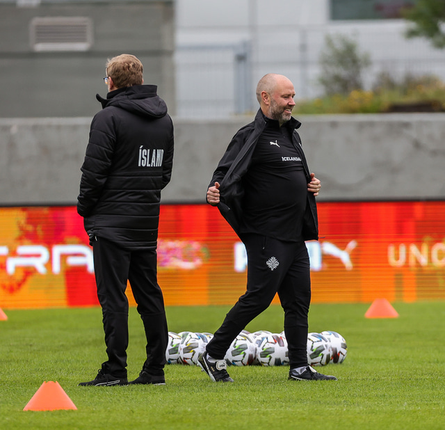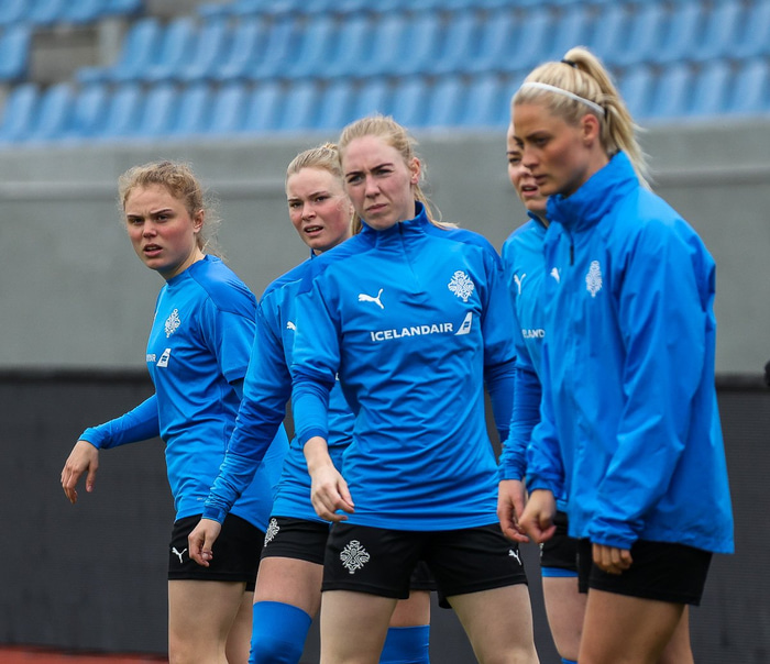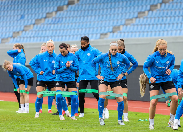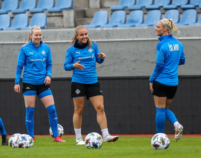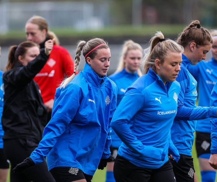 Ísland mætir Írlandi í vináttulandsleikjum á Laugardalsvelli á föstudag og þriðjudag. Liðið æfði í gær morgun og þar tókum við þessar myndir.