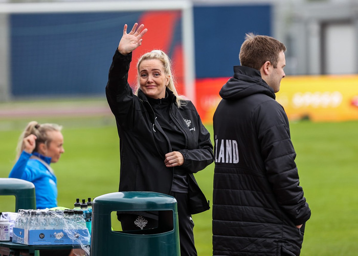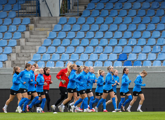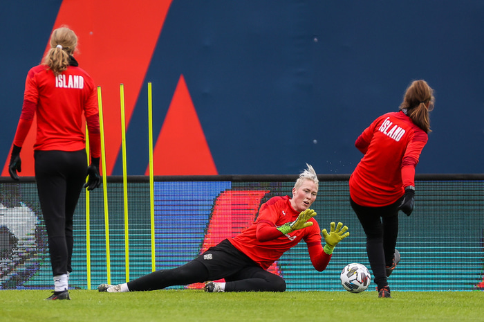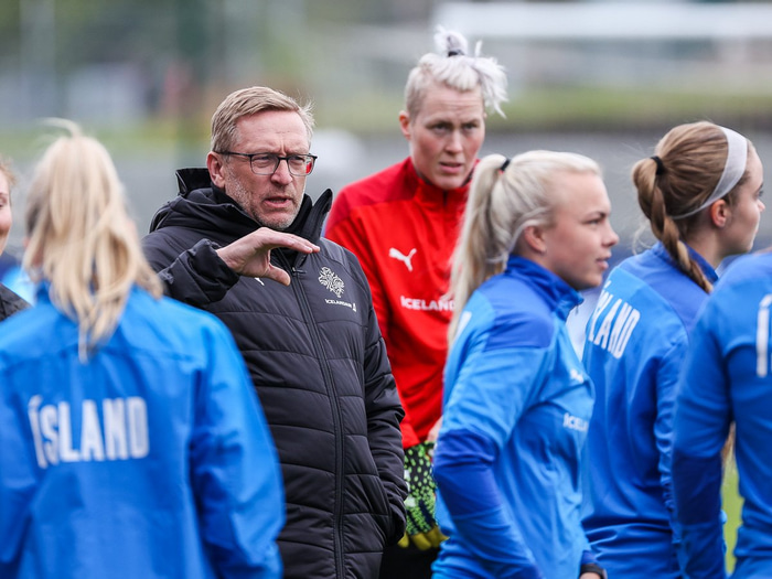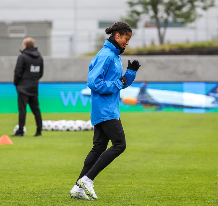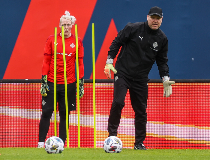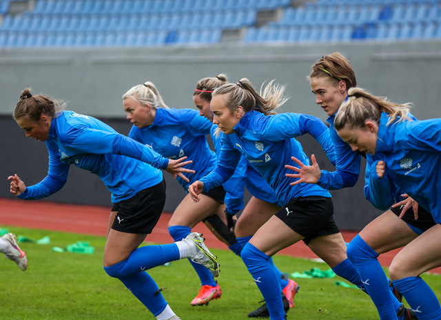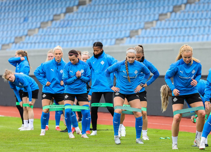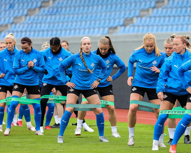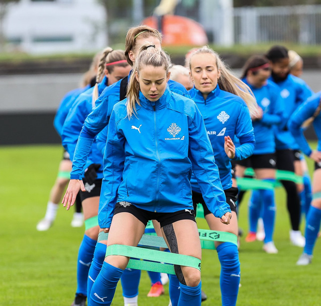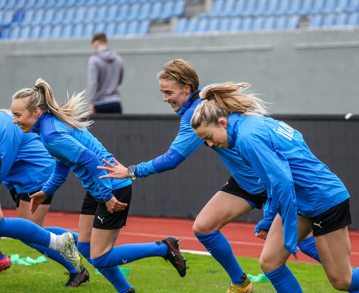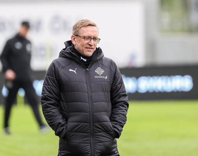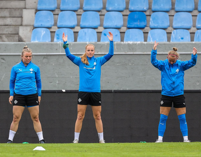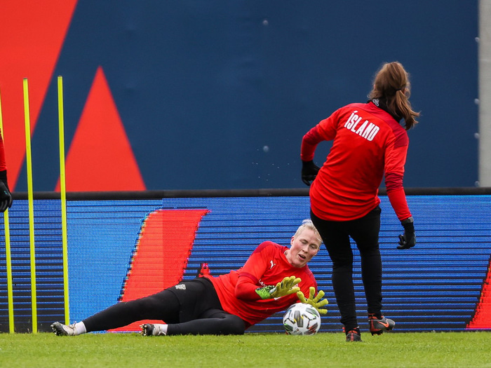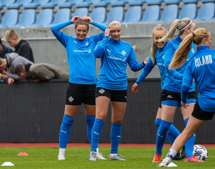 Ísland mætir Írlandi í vináttulandsleikjum á Laugardalsvelli á föstudag og þriðjudag. Liðið æfði í gær morgun og þar tókum við þessar myndir.
