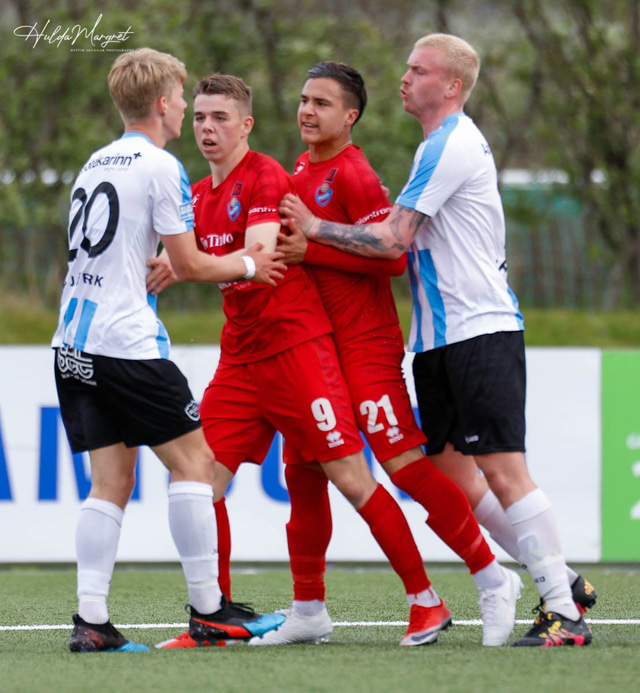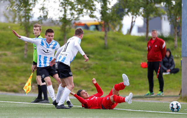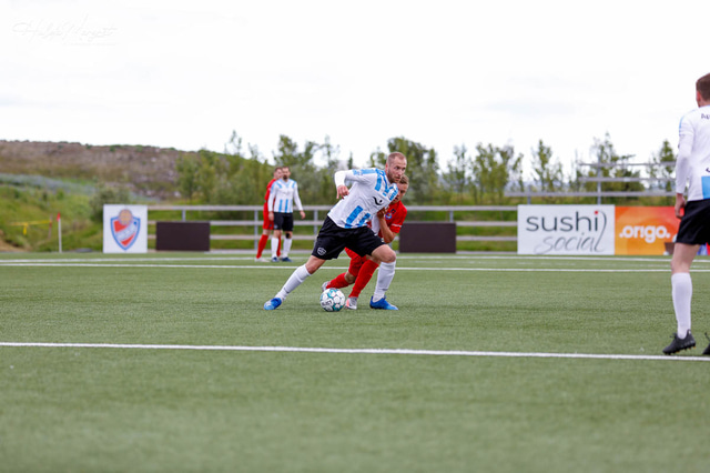 Selfoss vann 1 - 2 sigur á Haukum í 2. deild karla í fyrrakvöld. Hér að neðan má sjá myndir Huldu Margrétar úr leiknum.