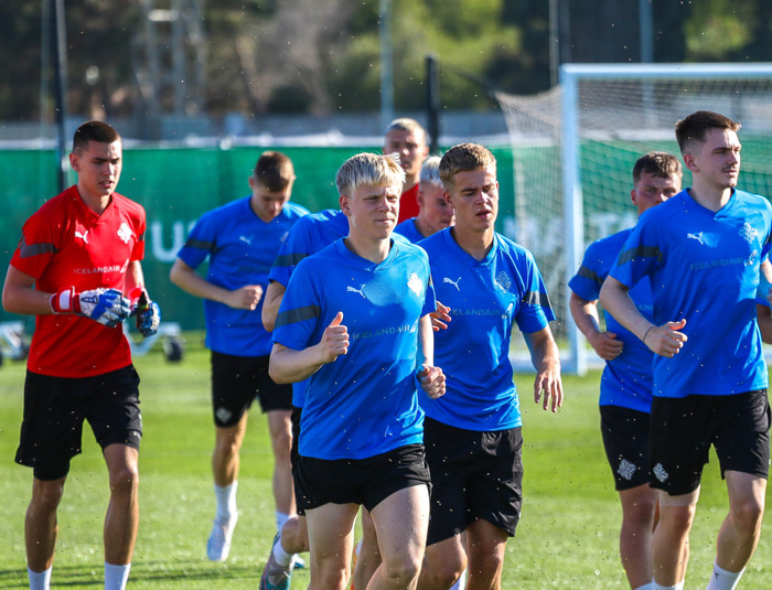 Strákarnir náðu jafntefli gegn Noregi og þar var það Eggert Aron Guðmundsson, liðsfélagi Róberts í Stjörnunni, sem skoraði jöfnunarmarkið. Markið kom seint en það var stórglæsilegt og er líklega mark mótsins til þessa.