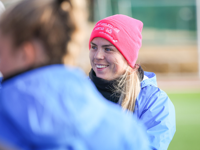 „Ég er spennt að spila þennan leik. Það er alltaf gaman að spila gegn Þýskalandi og það væri ótrúlega sætt ef við gætum fengið eitthvað gott út úr þessum leik og fagna því hérna á heimavelli."