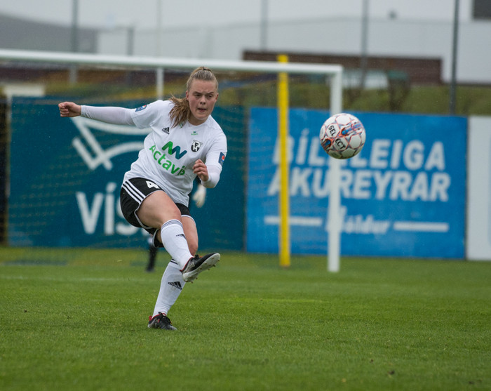 „Við vissum að þær voru erfiðar, búnar að spila við þær áður. Þær fengu tvö góð færi í fyrri hálfleik og svo stigum við upp,“ sagði hún um Hauka liðið en bætti svo við: „ Við hefðum átt að skora miklu fleiri mörk í seinni hálfleik,“