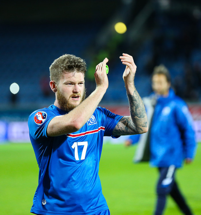 „Þetta er glæsileg byrjun og gerðum vel. Þetta er bara byrjunin. Við höfum ekkert unnið og verðum að halda því áfram," sagði Aron Einar.