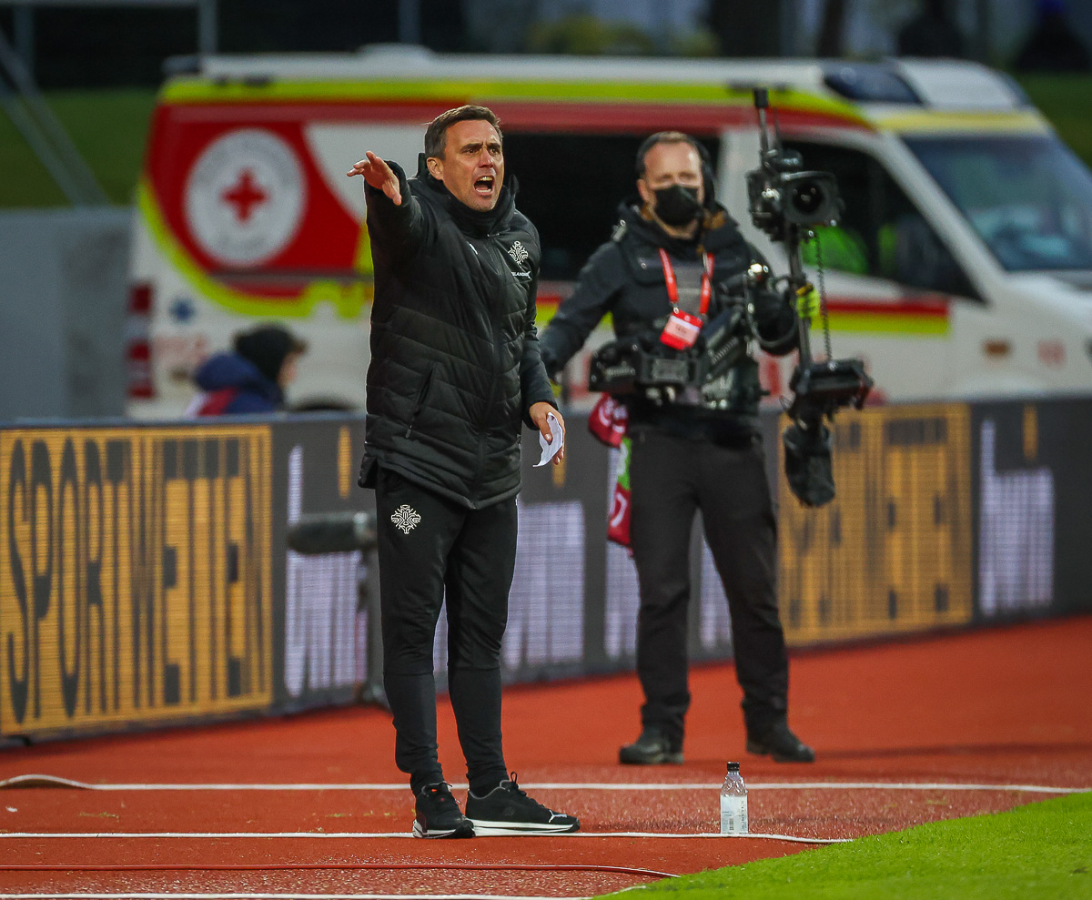 Ekki tókst þó betur upp en svo að ítrekað voru birtar auglýsingar frá bwin veðmálafyrirtækinu á skiltunum. Auglýsingar veðmálafyrirtækja eru bannaðar hér á landi og því ljóst að lög voru brotin á Laugardalsvelli í gær.