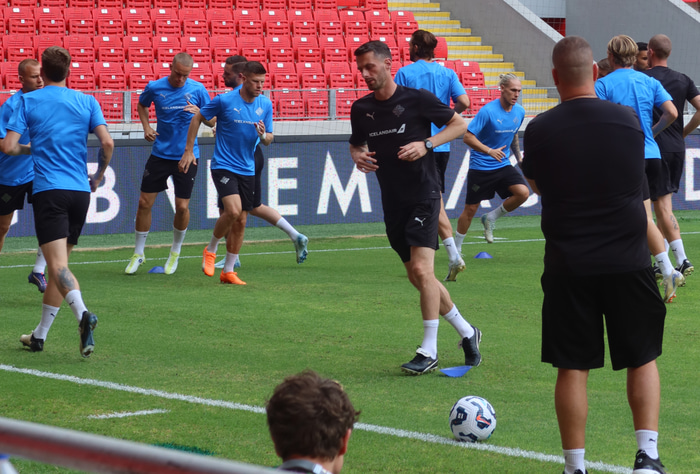 Næst er það Tyrkland í kvöld en það vakti athygli á æfingu í gær að Sölvi var í takkaskónum og tók þátt í byrjun æfingarinnar.
