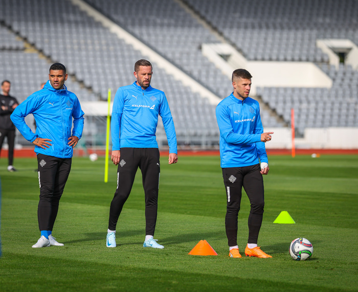 Gylfi er mættur aftur í landsliðið eftir um árs fjarveru en Jóhann Berg var með fyrirliðabandið gegn Svartfjallalandi og hefur verið með það í síðustu leikjum.