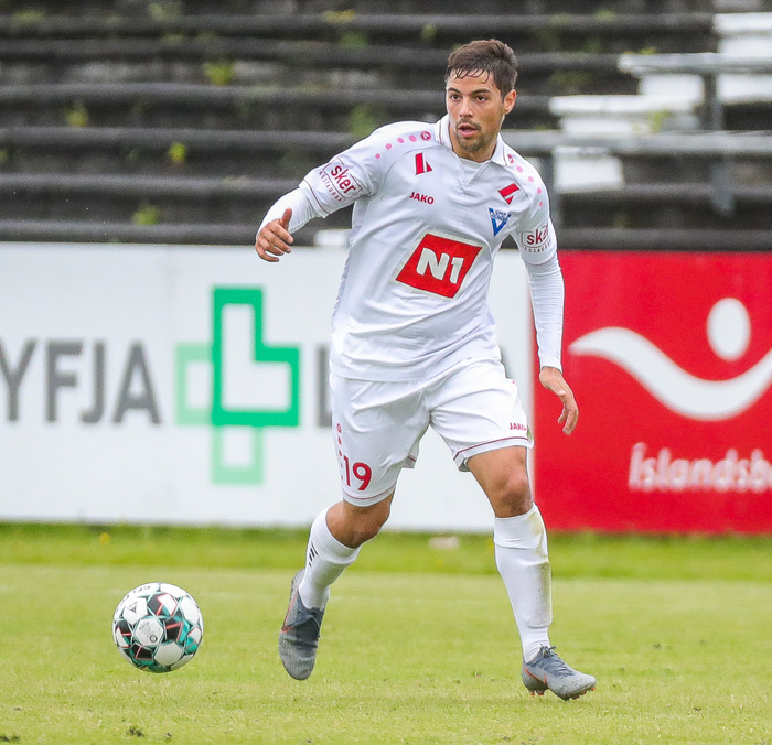 Gonzalo Zamorano, sóknarleikmaður Víkings í Ólafsvík, meiddist í tapleik liðsins gegn Leikni áður en fótboltanum var frestað.