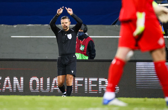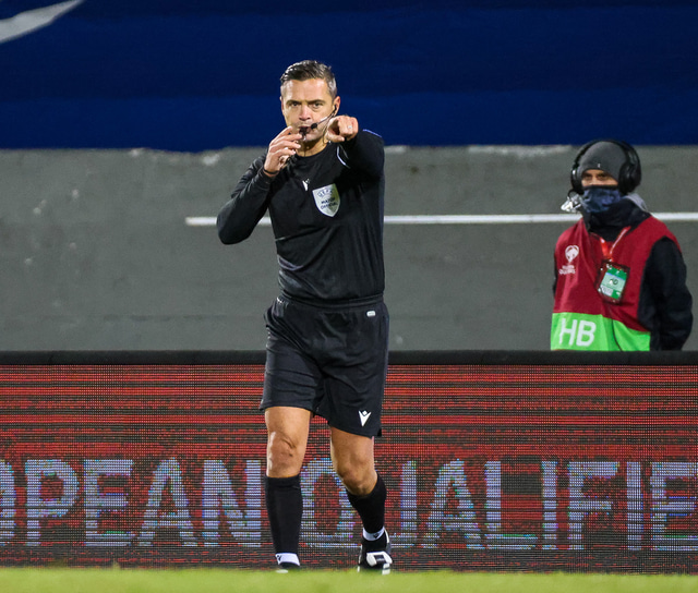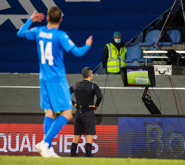 Damir Skomina dómari leiksins ákvað þá að skoða á VAR skjánum atvik sem átti sér stað í vítateignum og eftir að hafa staðið drykklanga stund við skjáinn ákvað hann að dæma vítaspyrnu.