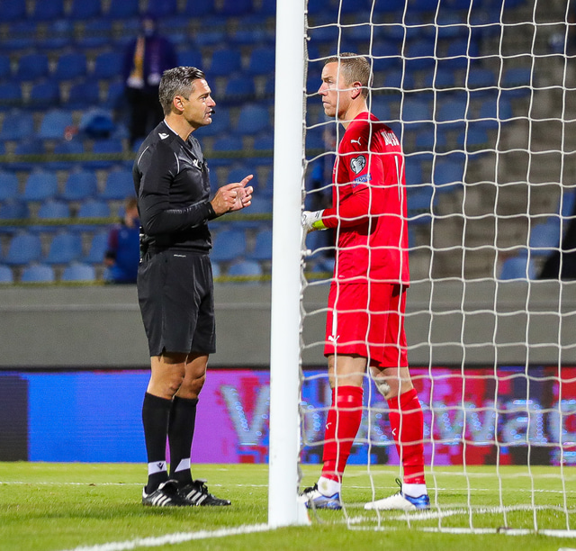 Þetta gekk þó ekki alveg upp því Maxim skoraði úr vítinu en Ísland vann leikinn og spilar úrslitaleik við Ungverjaland í Búdapest 12. nóvember um hvort liðið fer á EM.