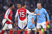 Það myndaðist smá hiti og atvikið var skoðað í VAR en ákveðið var að grípa ekki inn í. Eftir leik sagði Gabriel svo að Arsenal væri að bíða eftir því að City kæmi í heimsókn á þeirra völl.