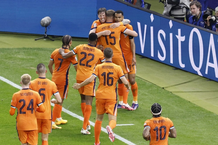 Holland: Verbruggen, Dumfries, J.Timber, Van Dijk, Van de Ven, Gravenberch, De Jong, Reijnders, Frimpong, Gakpo, Weghorst
