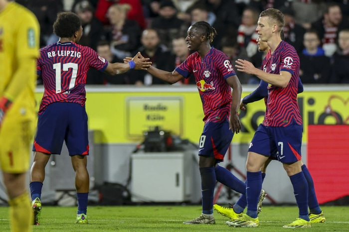 Ungverski markvörðurinn Peter Gulacsi hafði í nógu að snúast í markinu og varði frá Tim Kleindienst og síðan skalla Marvin Friedrich áður en Franck Honoroat setti boltann í þverslá.