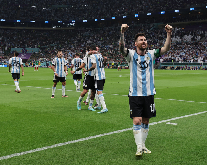 Argentína jafnar akkúrat 16 mínútum síðar eftir magnað spil og það verður óvænt Lionel Messi sem bindur endahnútinn á frábæra sókn.