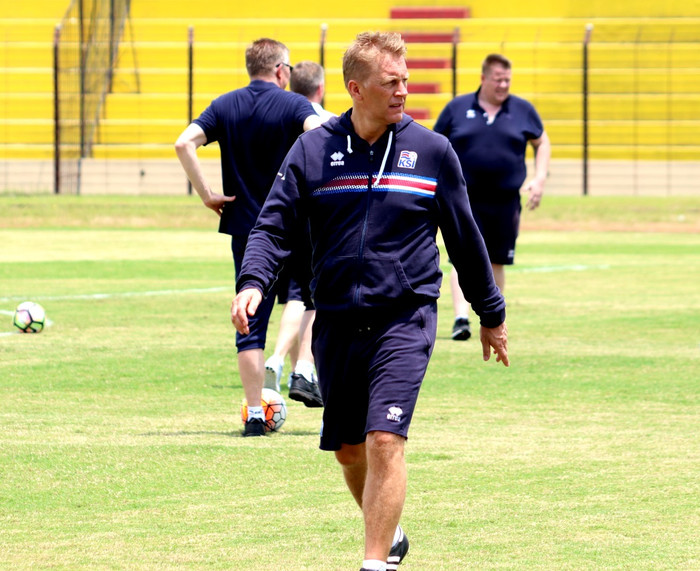 Hann og Heimir Hallgrímsson, landsliðsþjálfari, spjölluðu við Óskar Örn Guðbrandsson, fjölmiðlafulltrúa KSÍ, í Indónesíu.
