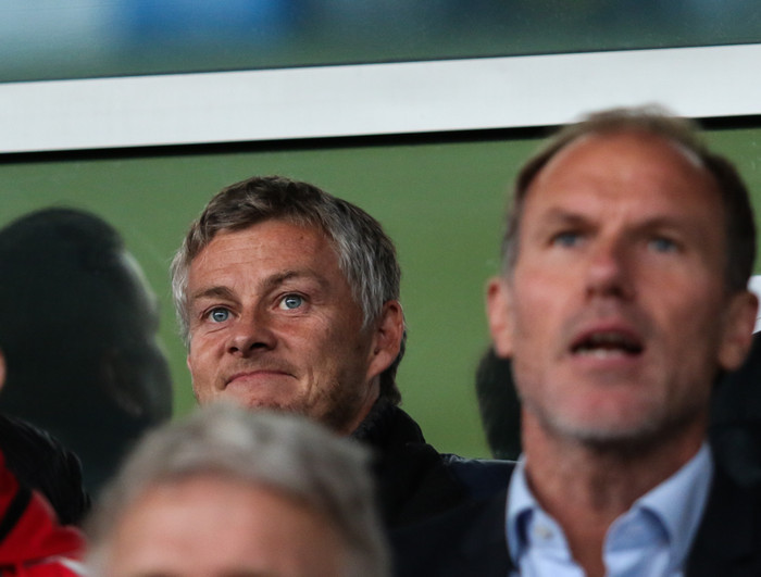 Solskjær í stúkunni á leik Vals og Víkings árið 2016 þar sem hann fylgdist með Óttari. Hann fékk Óttar síðan til Molde.