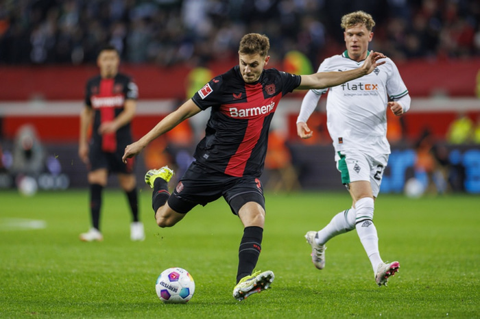 Josip Stanisic er búinn að skora gegn sínum fyrrum liðsfélögum. Bayer Leverkusen 1 - 0 FC Bayern München.