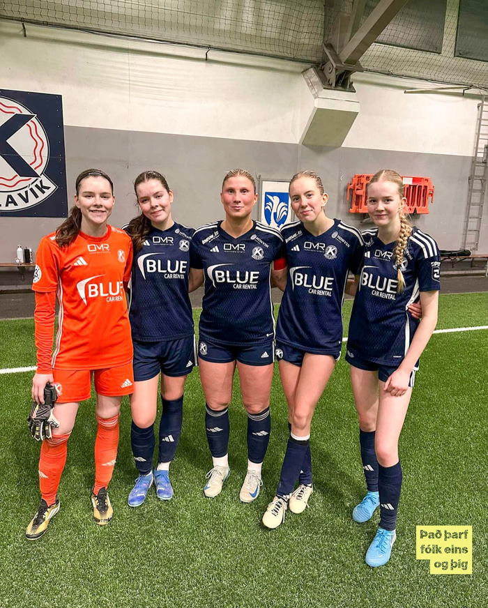 Fimm þeirra má sjá á meðfylgjandi mynd, en á hana vantar Evu Lind sem meiddist eftir um klukkutíma leik og þurfti að fara á sjúkrahús í kjölfarið.