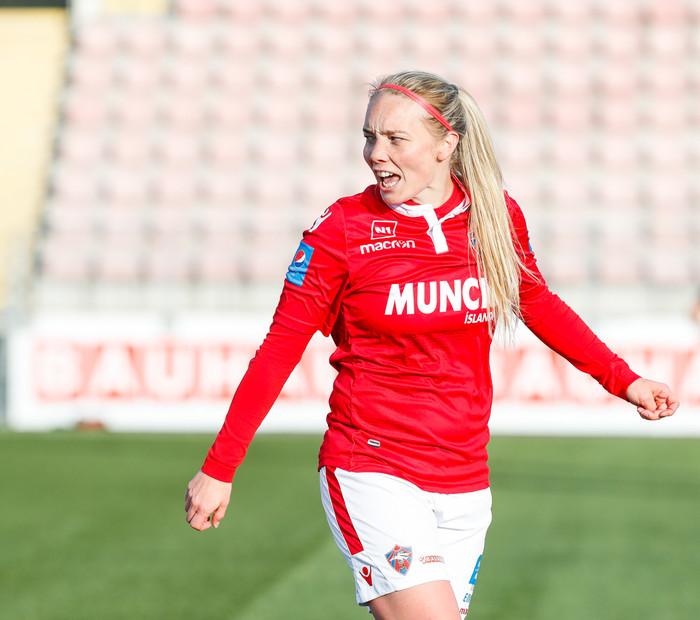 „Fyrri hálfleikurinn var mjög jafn og fær á báða bóga en mér fannst við yfir allan leikinn. Þær fóru svo að sækja mark í seinni hálfleik og það opnaðist þá fyrir okkur. Við hefðum getað sett fleiri en við vorum í einhverjum krummafót fyrir framan markið."