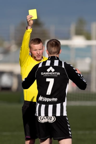 Í sama leik verður að gefa dómaratríói leiksins mikið hrós fyrir þrjú atvik. Í fyrra marki Stjörnunnar lætur dómari leikinn halda áfram þó svo að brotið sé á leikmanni Stjörnunar á miðjunni. Í stað þess að dæma strax gefur hann merki um hagnað og upp úr því nær sóknarmaður Stjörnunnar að skora. Vel gert og við viljum sjá meira af þessu í sumar. Dómari leiksins dæmir einnig tvö víti í leiknum á markmann Stjörnunnar. Hárréttar ákvarðanir í bæði skiptin og sérstakt hrós á hann fyrir að hafa pung í að dæma í seinna skiptið þegar markmaðurinn hoppar í bakið á sóknarmanni ÍBV. Maður sér allt of oft dómara leyfa markvörðum að komast upp með að keyra/hoppa inn í bak sóknarmanna, en þarna var ekkert elsku mamma í boði og vonandi er þetta það sem koma skal. Markverðir eru ekkert gullagull inn í vítateig.