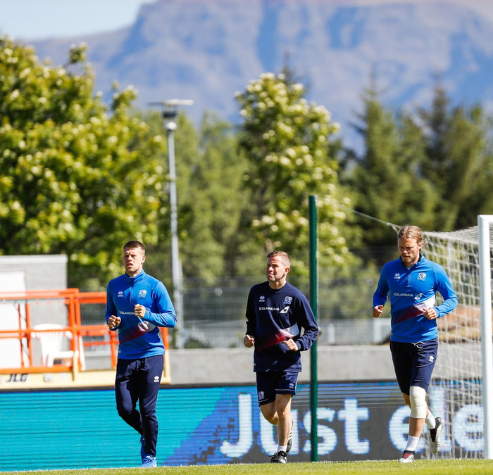 Jóhann Berg og Birkir Bjarnason eru tæpir fyrir leikinn en þeir æfðu ekki með hópnum heldur skokkuðu með Frikka sjúkraþjálfara.