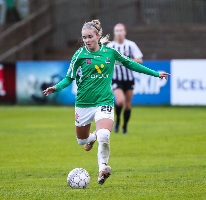 „Ég fann það bara um leið og við komum á grasið þarna úti. Þetta var alveg fullkomið gras. Maggi Bö búinn að klippa þetta vel og svo komum við bara inná og við sýndum hörku og mættum í fyrstu tæklingu. Komnar til að vinna.“