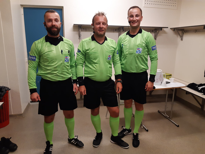 Pólverjarnir Jakub Marcin Róg, Patryk Emanuel Jurczak og Tomasz Piotr Zietal mynduðu saman dómarateymið í leik Sindra og KV í 3. deildinni 31. ágúst síðastliðinn.