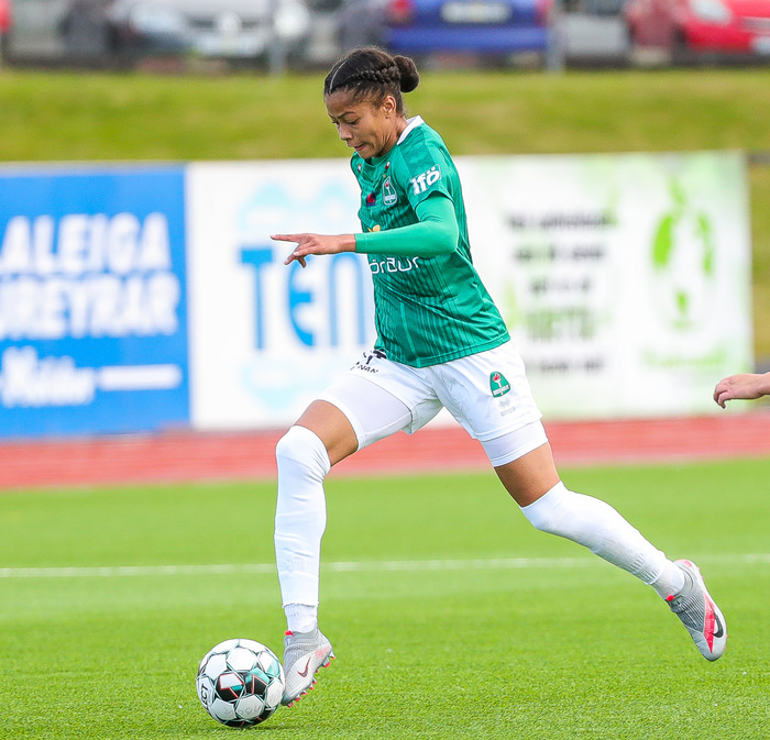 Sveindís spilaði á kantinum fyrri hluta tímabils en eftir að Berglind Björg Þorvaldsdóttir fór til Le Havre í Frakklandi á dögunum þá er Sveindís farin að spila fremst á vellinum. Sveindís þekkir það að spila frammi en hefur lengi gert það hjá Keflavík.