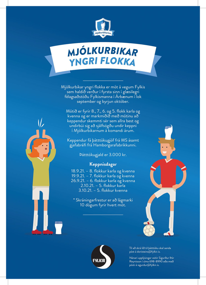 Mjólkurbikar yngri flokka eru mót á vegum Fylkis sem haldin verða í glæsilegri félagsaðstöðu Fylkismanna í Árbænum í lok september og í byrjun október.