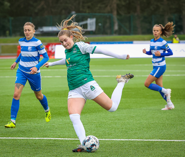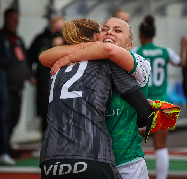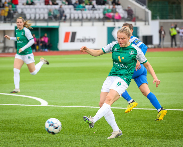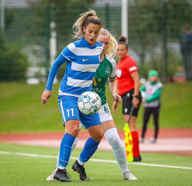 Breiðablik vann í gær 3 - 0 heimasigur á ZNK Osijek í umspili um sæti í Meistaradeild Evrópu kvenna. Þar með er ljóst að liðið verður í hattinum þegar dregið verður eftir helgi. Hér að neðan er fjöldi mynda úr leiknum.